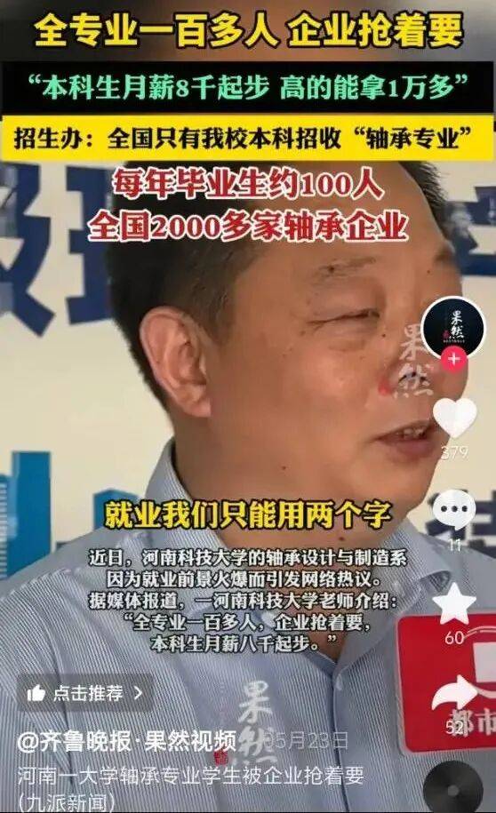 按照学校官方的说法,毕业生根本供不应求,完全不用担心会找不到工作,各大轴承企业都是争着抢着要,本科生都能做到月薪8000起步。