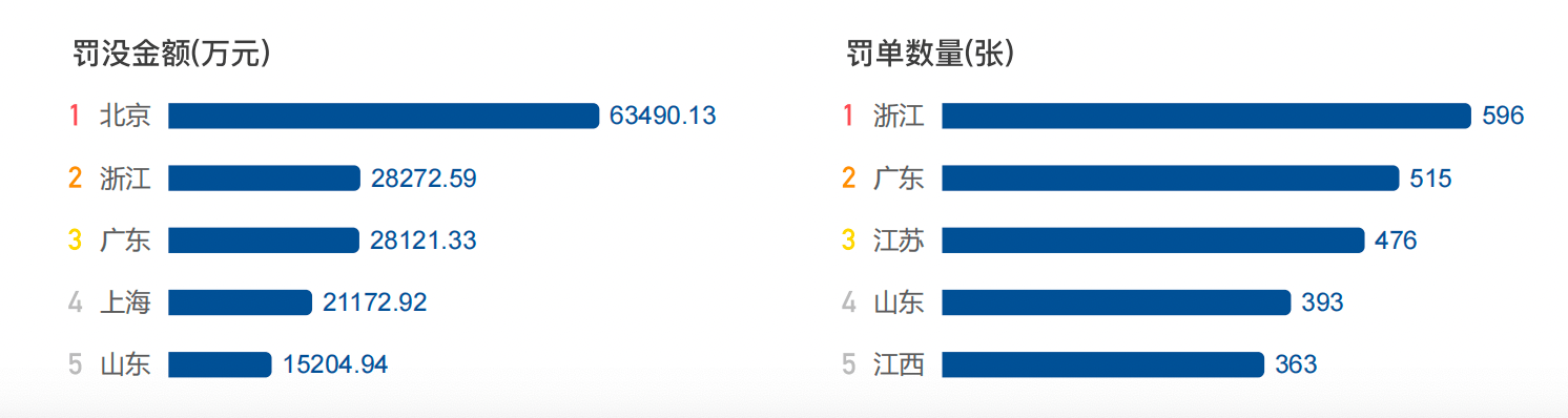 与全国其他省份相比,广东罚单数量仅次于浙江,位居第二;罚没金额则位居第三。在业内人士看来,广东银行业罚单数量和罚没金额都相对靠前,既源于广东经济活跃、银行机构网点基数庞大,也反映了地方监管部门全面贯彻强监管严监管的基调,对各类违规行为零容忍。
