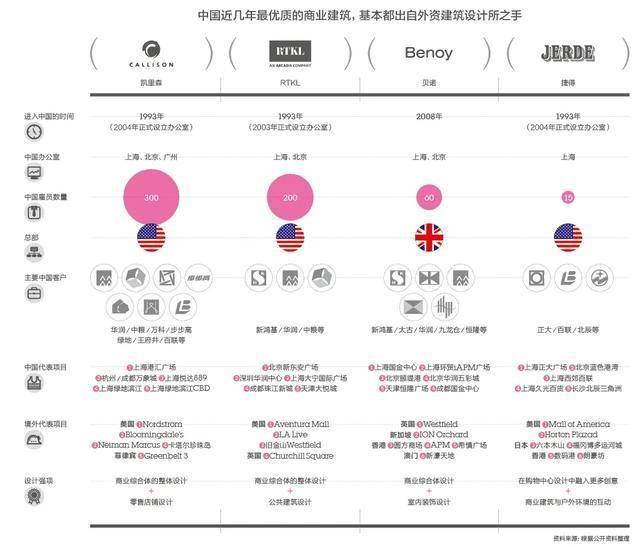 回望二十年前,外资建筑事务所在中国享受的是最高级别的礼遇。彼时刚刚外资建筑事务所进入内地,Callison、RTKL、Benoy、Jerde几乎包揽了所有高端购物中心的设计。90年代中国没有商业综合体这样的建筑概念,一线城市能数得上的大型商业项目,基本都是外资建筑所做概念设计。1993年进入跟随凯里森进入中国市场的杨砚和1994年跟随RTKL进入国内的袁孝楠也是业内一时瑜亮的双子星,他们应该也不曾想到22年后每个项目卷生卷死的对手竟然会有一天变成一家,之后袁孝楠成为CRTKL老大,杨砚出走成立3mix,而在7年后凯谛思Arcadis宣布将集团旗下CallisonRTKL和Arcadis IBI建筑与场所团队合并。有空写一期《中国外资建筑设计事务所发展史》应该会很有意思。