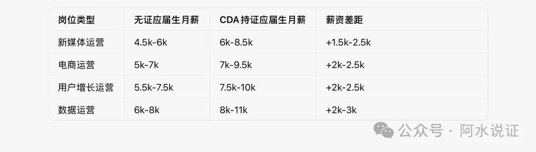 CDA是运营岗最具性价比的权威证书,贴合数字化运营需求,系统掌握数据复盘、增长分析能力,让运营动作可量化。企业招聘明确“持证优先”,零基础易上手,毕业薪资比普通运营高20%-30%,是突破低薪、转岗增长/数据运营的核心筹码。