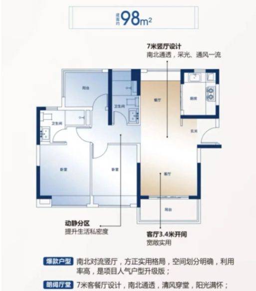 住宅户型建面71-125平方米,设计涵盖二至四房配置,主要户型特点为南北通透、双阳台配置及合理动线布局。户型内部空间利用率高,客厅、餐厅、厨房及卧室功能分区清晰,保证生活舒适性和私密性,同时适应家庭多样化生活需求。